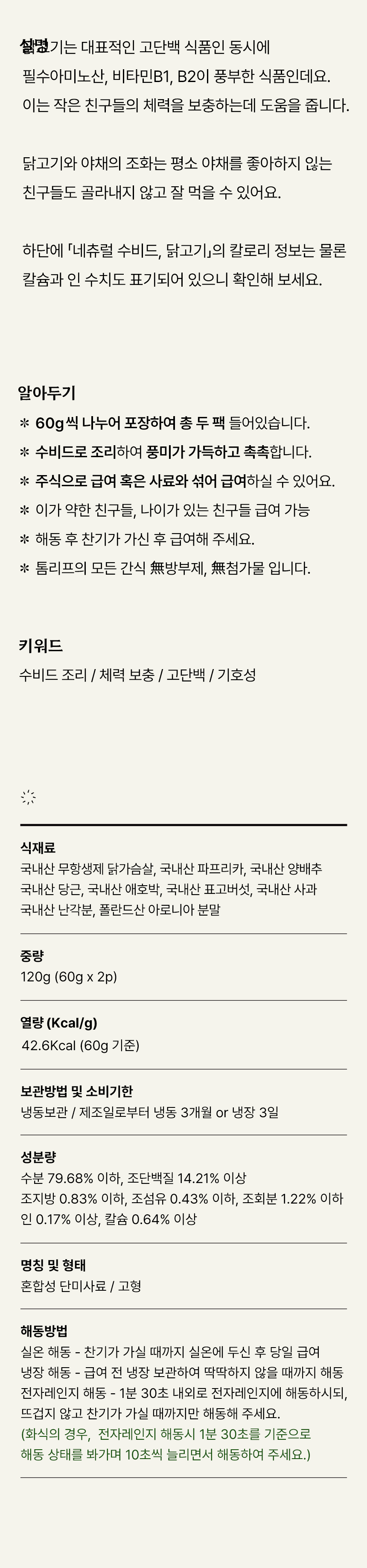 대표적인 고단백 식품인 닭고기를 베이스로