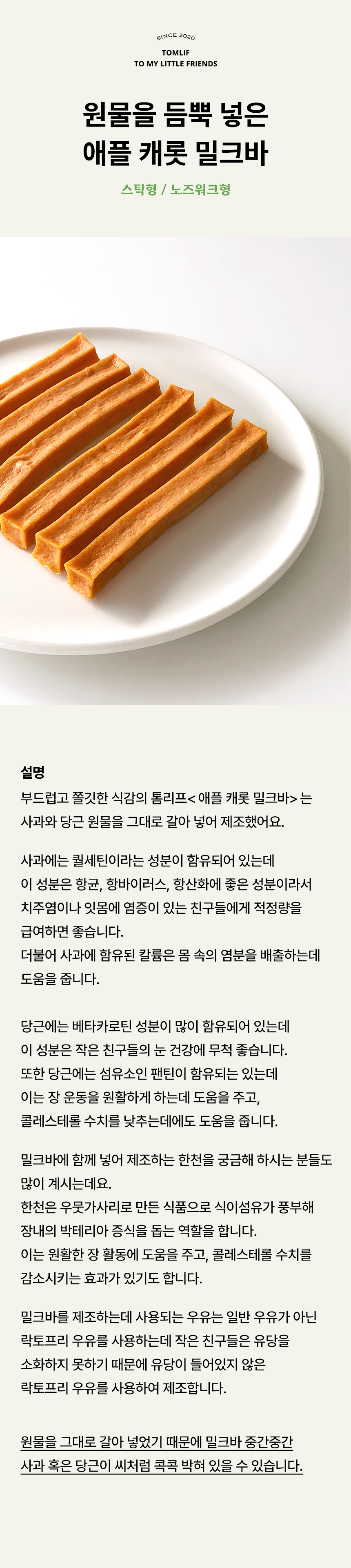 톰리프 애플 캐롯 밀크바 (스틱형/노즈워크)